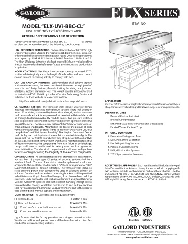 MODEL “ELX-UVi-BBC-CL” ITEM NO. _______________